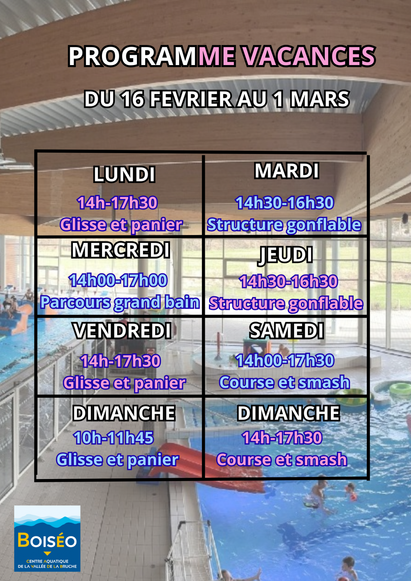 Ouvert toute l'année (vacances scolaires incluses), notre espace aquatique et ses équipements sportifs et loisirs vous accueille pour faire le plein de bonne humeur !