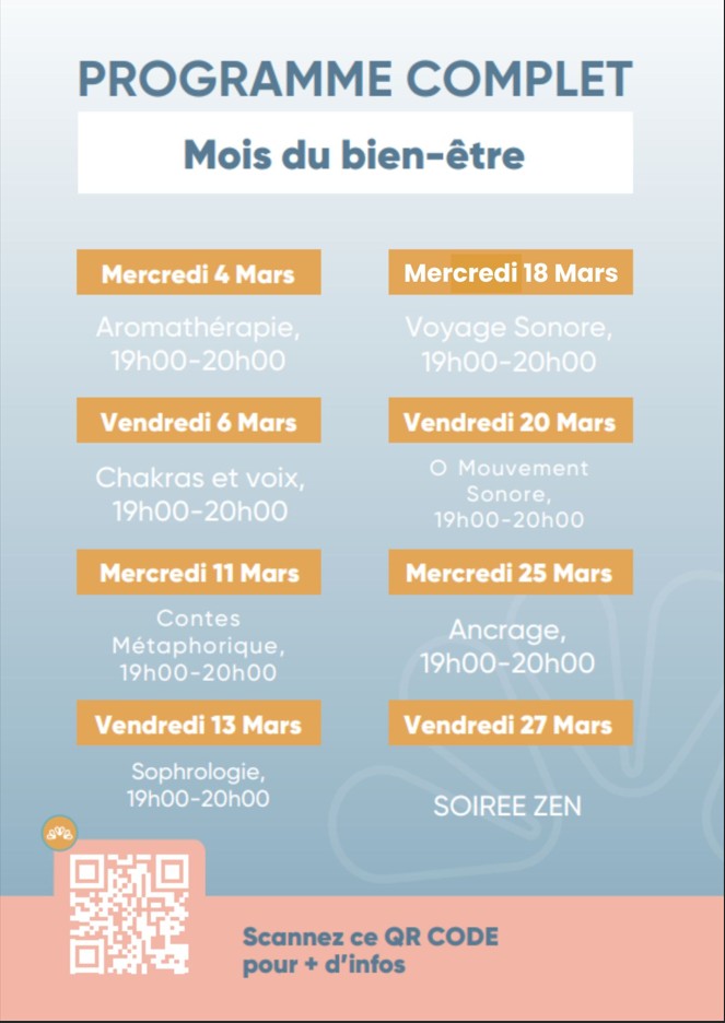 Du 4 au 27 mars, venez découvrir nos activités dédiées au bien-être